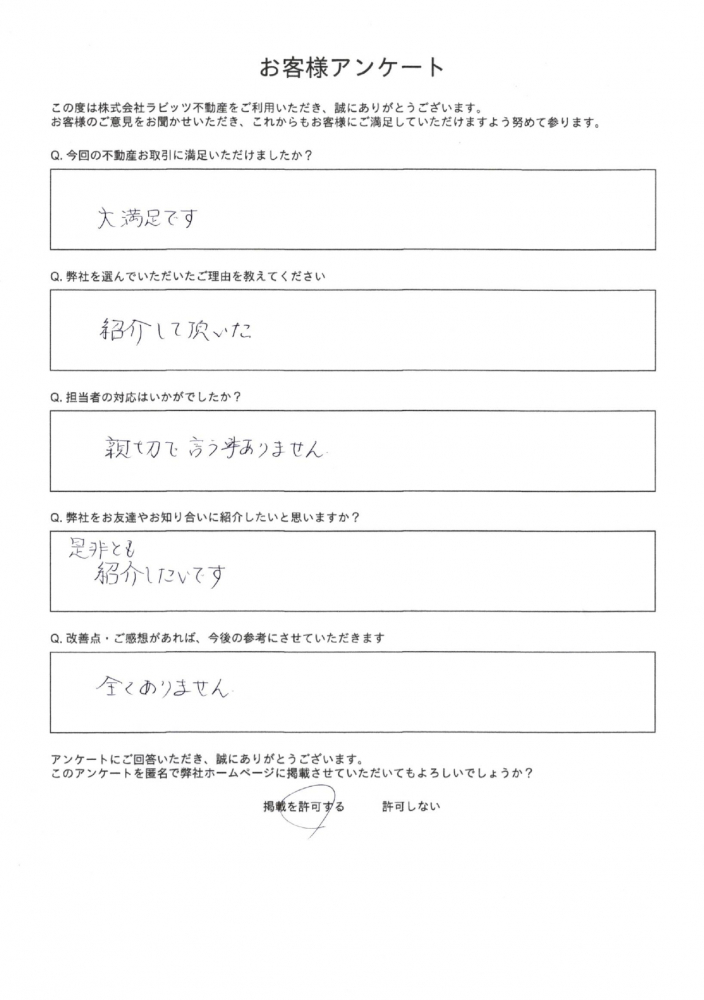 ご売却を弊社にお任せいただき、また最後まで信頼いただきまして、心より感謝申し上げます。